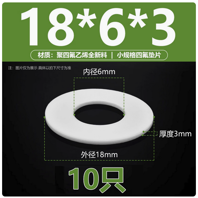 Φ18*Φ6*3mm 硬式鐵氟龍墊片 *10